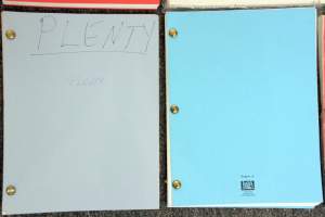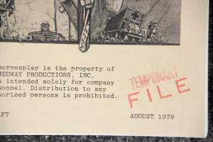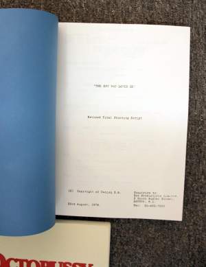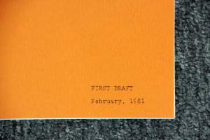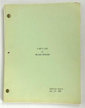 Universal Pictures, 1982. Xerographic manuscript, shooting script titled A Boy's Life by Melissa Mathison, 113 pp, August 21, 1981, with blue, yellow, green, and pink rev...