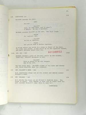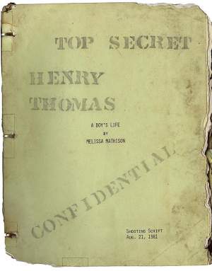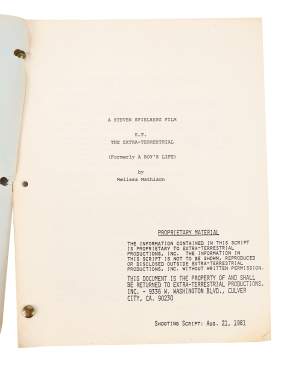 A Robert MacNaughton script of E.T. the Extra-Terrestrial titled A Boy's Life
