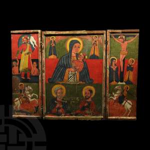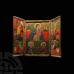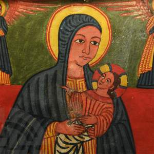 Large Ethiopian Icon of the Virgin and Child Surmounted by S...
