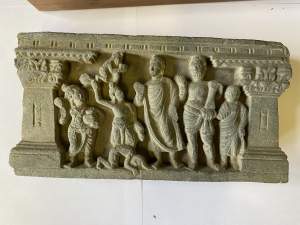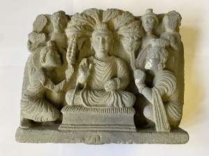 A GANDHARA GREY SCHIST RELIEF PANEL, NORTH-WESTERN PAKISTAN,...