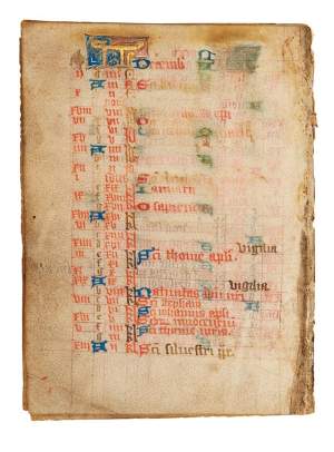 Calendar leaf for December, from a Book of Hours, in Latin, ...