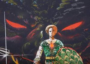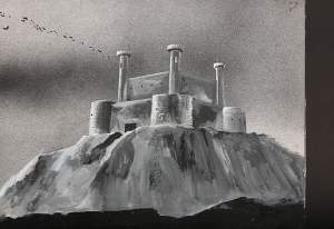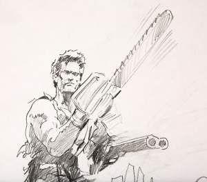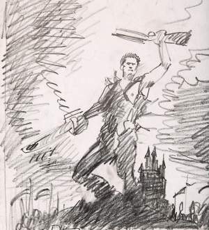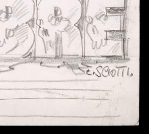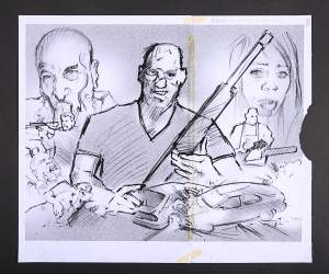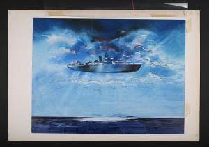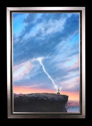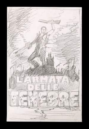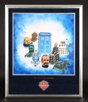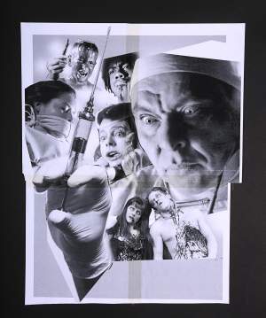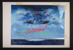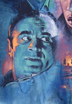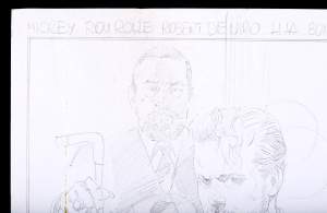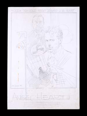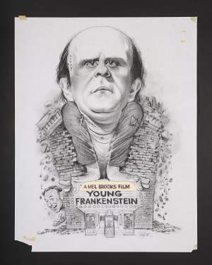 Print of the "Style-B" US One-Sheet poster for "Young Frankenstein" (1974) which has been mounted and re-touched, all on Crescent® artboard, offered with a large pencil Artwork of Peter Boyle (the "Monster" in the film) and Mel Brooks, this on layout...